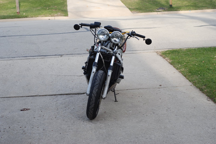 Almost done building my 'fighter. Lots of big mods left to do, but it's riding season, so I'm putting them off for rainy days or the winter. Still have some tweaks left to do, like move the headlights down some and put on turn signals.