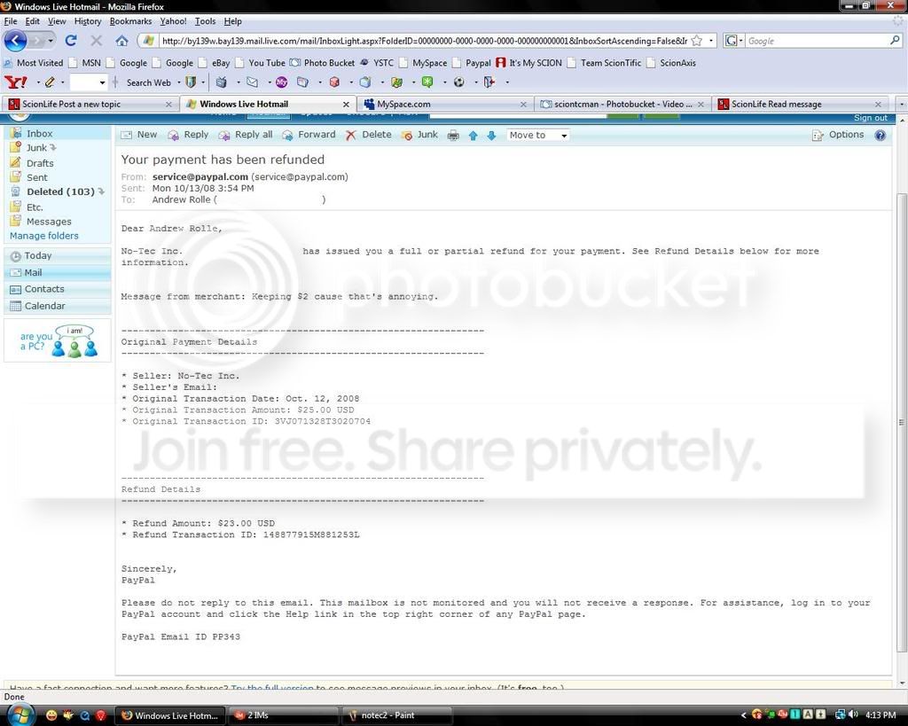 SuchaCleanTC (3:58:07 PM): Message from merchant: Keeping $2 cause that's annoying.