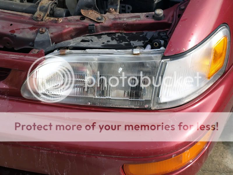 here is a link to Crystal View Headlight Restorer Kit. My buddy's Altima headlight look exactly like that car. LOL He need highbeam to read street signs.