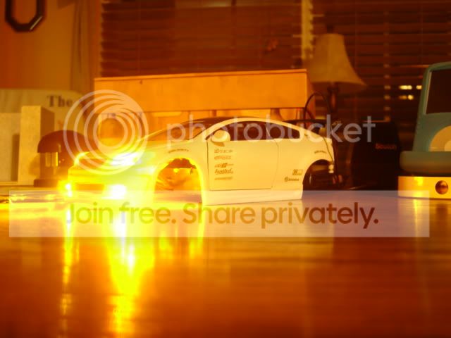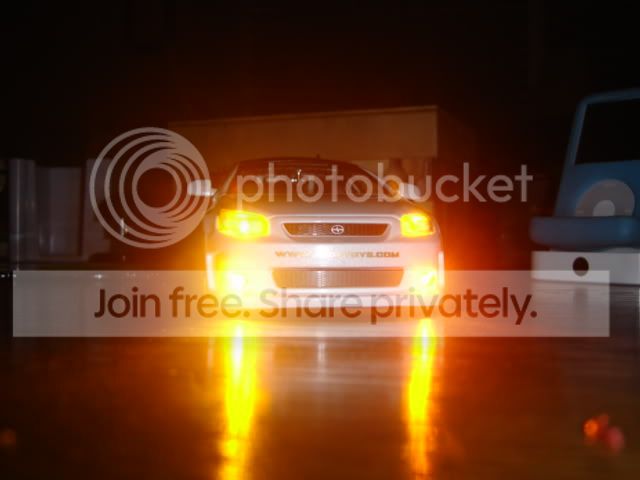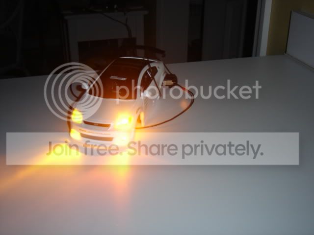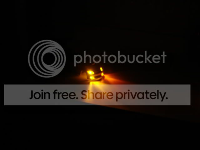 and now for the newest creation, headlights for my toy tC, im not finished yet, i still have to drill holes for the switch and connect it, and i plan to get white leds for the headlights and keep yellow for the fogs...and btw one led is orange in these pics and the other 3 are yellow, because i didnt have enough yellow...check it out...