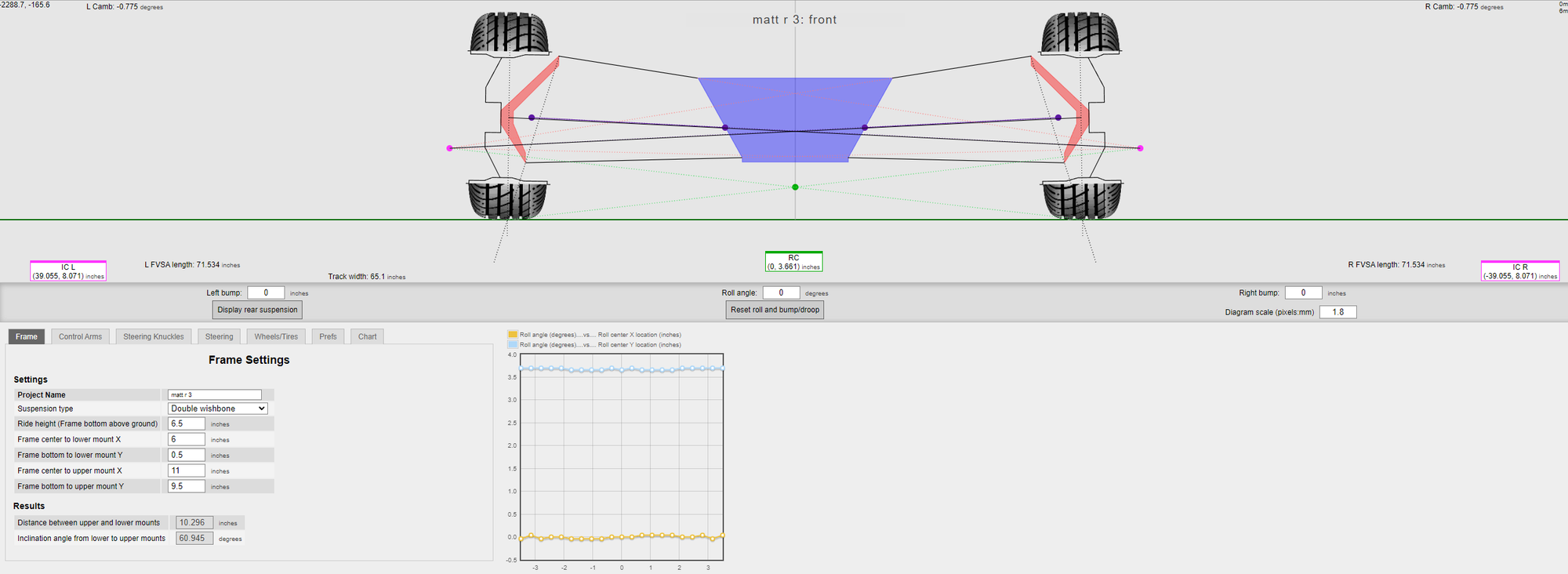 Eventually I plan on getting a new car, some kind of toyota or lexus suv but I've had this idea of building my own car for a very long time. Awhile ago I realized I could use the suped up parts in my xb to make a mid engine open wheel roadster, a locost. There a couple programs online you can use for free to design a cars suspension, Vsusp and Racingasperations are two I used.
