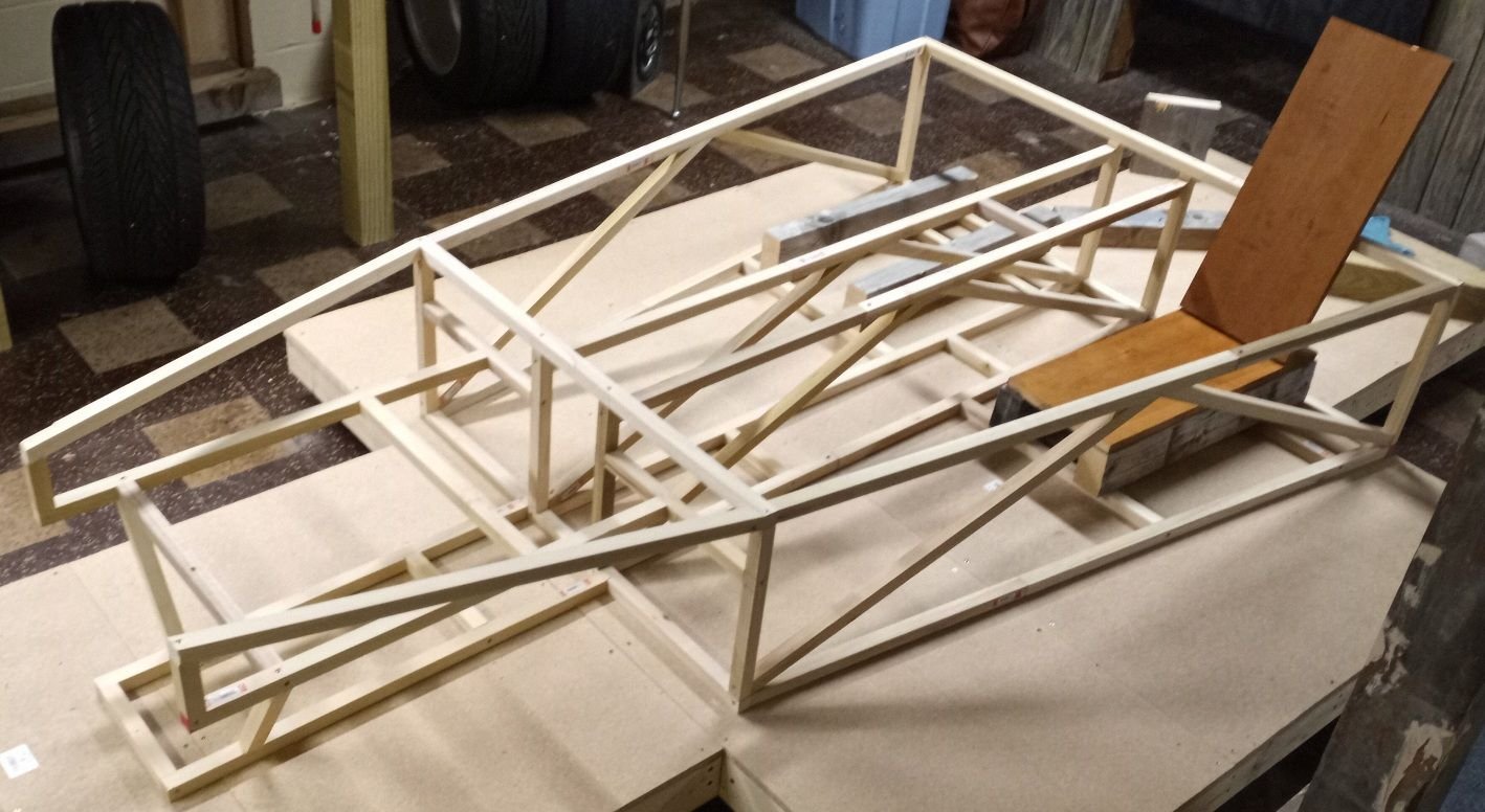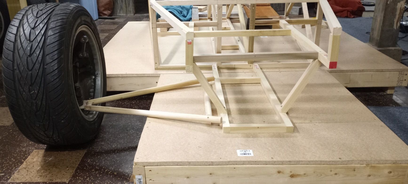It will be around 65" track width and 99" wheelbase. I know this project will take a long time so I decided to make a model of my car from dowels and parts I will eventually use so I can sit in and feel where I'd like things or whatever.