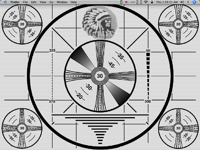 Here's a small screenshot of the old 1939 RCA "Indianhead" test pattern I use.