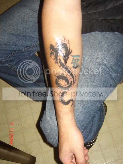 this one my friend got. the kanji he had gotten previously, he just wanted to add a dragon holding onto it. that took about an hour and a half to do.