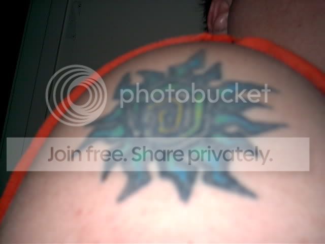 Here's my right upper arm/shoulder, Tribal Sun, full color. This was my first Tat, 5 years ago.