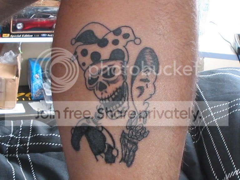 I was wondering where this thread went. I had mine done 2 weeks ago tomorrow. I had no bleeding, no scabbing, and minimal peeling. This is my first, but not my last. The design is an original. I made it back in high school from a sticker that i saw on a skate board. I modified it, tucked it away, and wanted for the longest time to turn it into a tat. After getting divorced, filing for bankruptcy, and trying like hell to start my life over, i decided it was time.