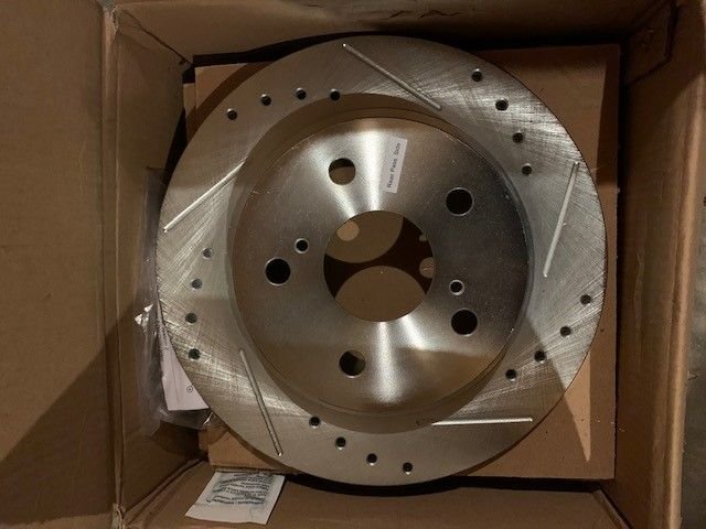 Never installed, cross drilled and slotted rotors with brake pads (not pictured) for rear TC2.