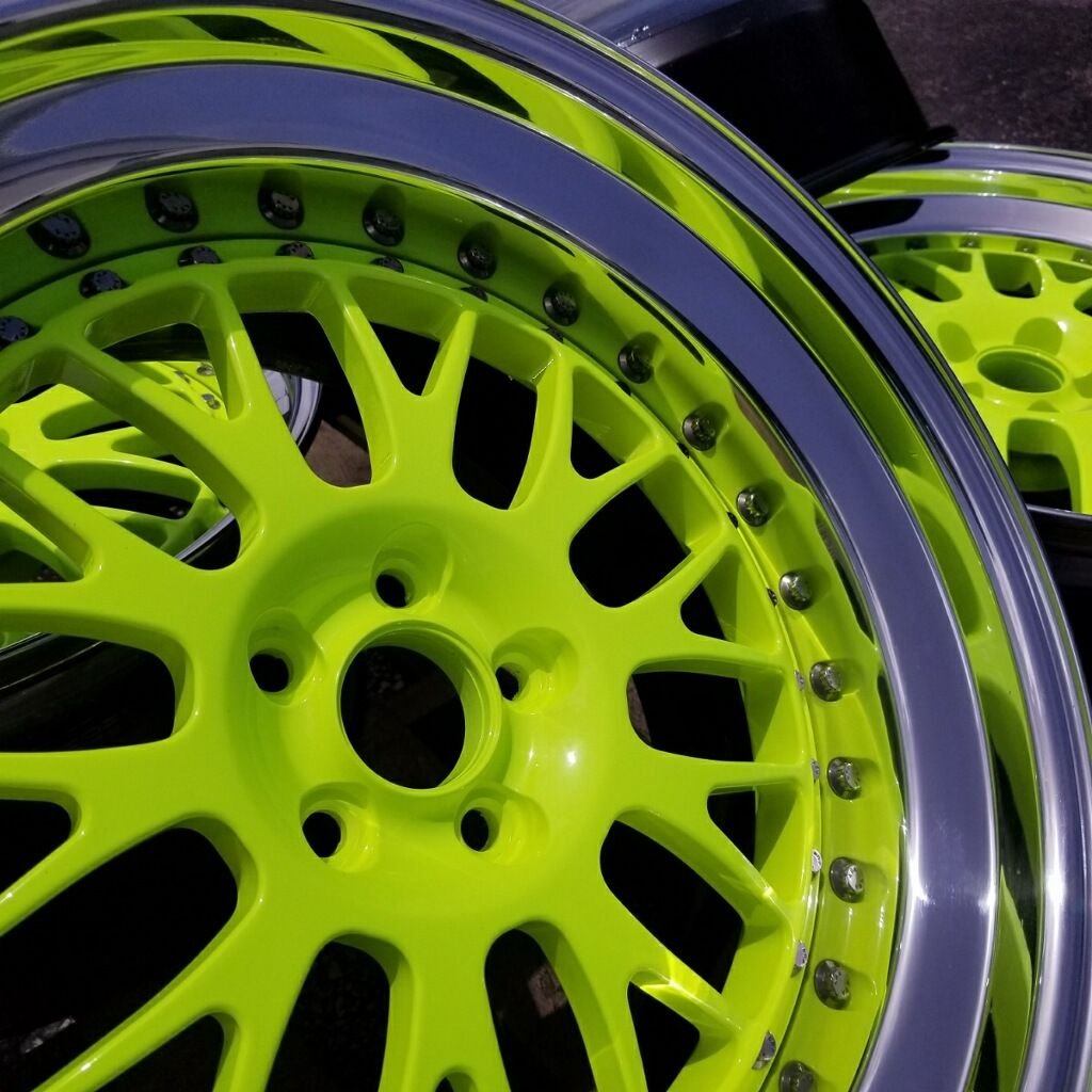 Everyone will notice you on this color trust me ! 5x100 CCW LM20 3 piece wheels made from 6061-T6 forged aluminum with stainless steel Arp hardware. All this included in price Power coated Neon Yellow Front 18x9 +13 3 inch step lip Rear 18x10 + 25 4 inch step lip 4 new CCW valve stems 4 original CCW center caps ( have small scratches, can't be polish by machine or you will erase CCW lettering ) (last picture is the rims before i changed the color.) Wheels are in excellent condition, just had them polished, reseal and power coated Neon yellow and torque to CCW specifications.
