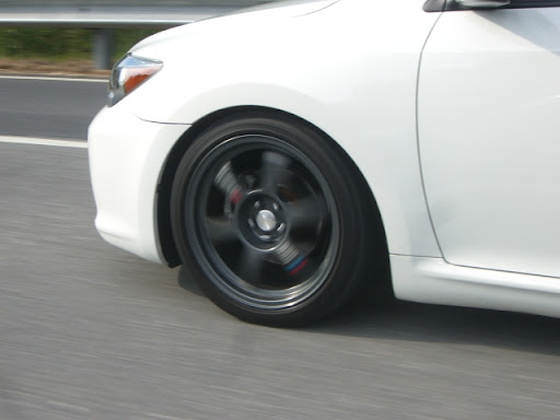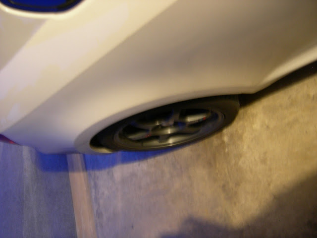 Per some requests, here are some pictures of the wheels mounted on my old car. Sorry, I don't have the car anymore, so I can't just go outside and take more pics: