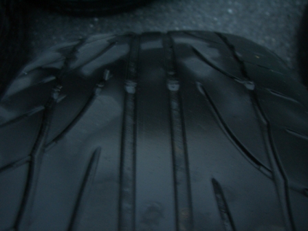 The tires do not have much tread left on them, but will get you around for another thousand miles or so. There is no uneven, or camber, wear on the tires.