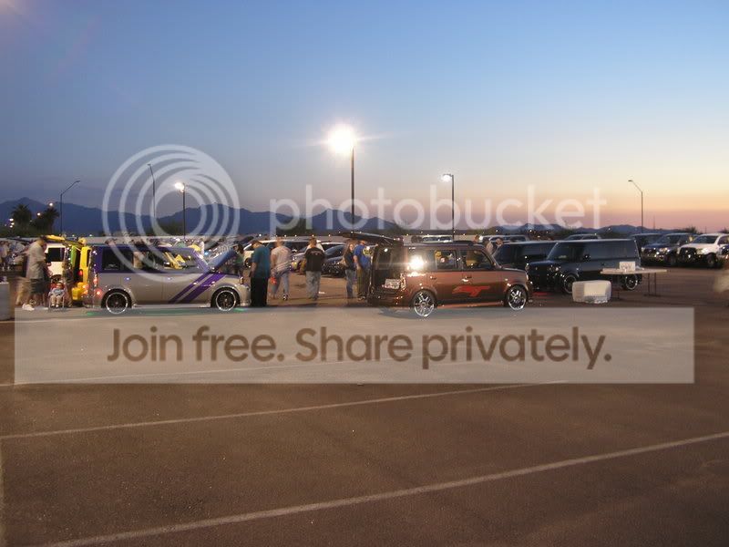 had a great time met a bunch of new people. and fell into a smokin deal on some wheels. ill post my pics when i get them on the computer. anybody else that has picks please post!! there were a ton of camera flashes so lets see em!! i think final car count was 57??? i think. thank you to Brad (GM) at avondale for openig the doors again for the scion com to come a hang out. and thanks to everybody else that helped out with this event. it was awesome!!!!!!!!!!!!