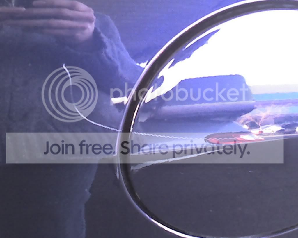The first scratch looks like someone had a rotating tool (like a drill) and got a little too close to my car. It's not very deep, but it's ugly! It's a few inches long and goes across the gas door.