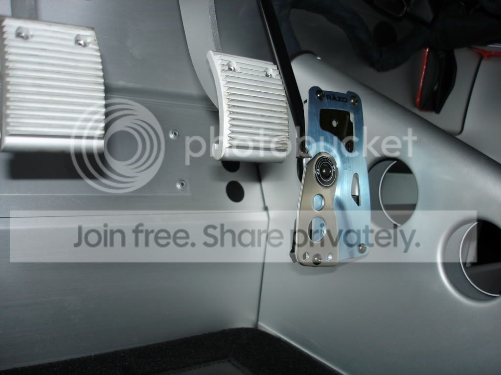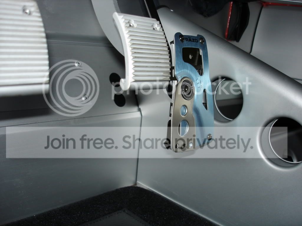 I'm preparing for a track day, my accelerator pedal needed to be raised a bit to allow for better heel and toe so I added a Razo small pedal to the accelerator, it feels much better now since it sits closer width-wise and height-sie in relation to the brake pedal.Here are the pics, sorry for the quality I was using my Sony W1 Point and shoot: