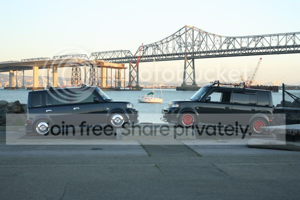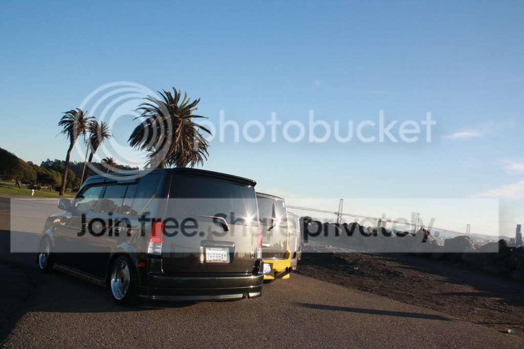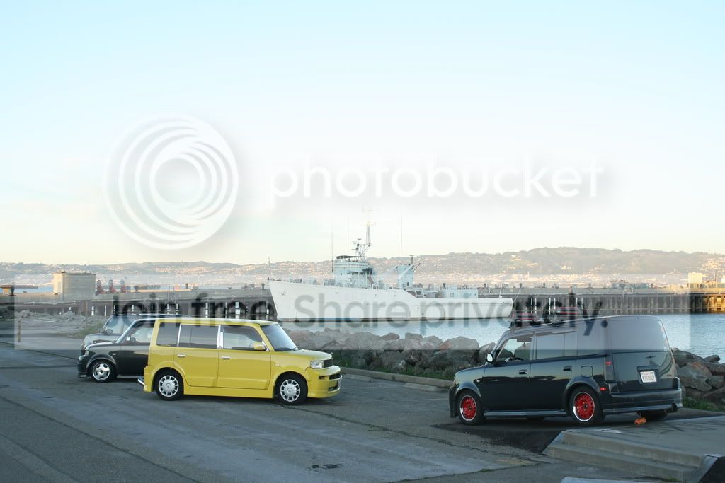 well had an AMAZING weekend with scion owners. heinz and AO came up from socal billy met up with us on treasure island and we had a last min photo shoot besides billy's our cars were dirty and beaten up buuuuuut w/e. lol
