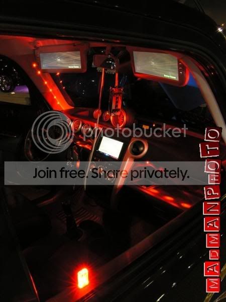 Right now i only have planned to put them by the feet. and they are blue. some ppl told me to try the cup holders and air vents. those sound sick. i just been trying to find pics but no real good ones.