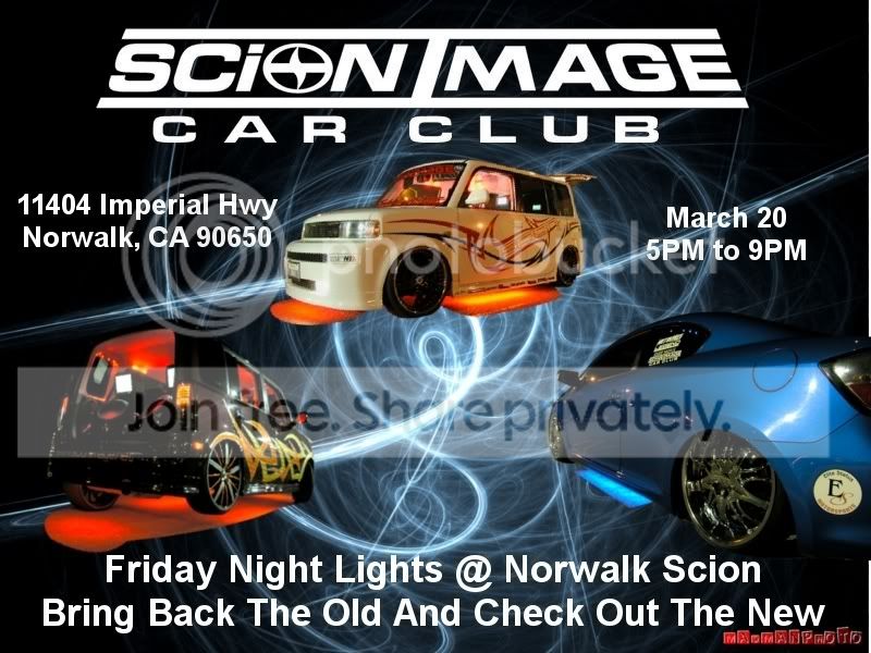 we want all current owners that drive scion's to come out and hang out to some free food and entertainment and get alot of goodies......Orale