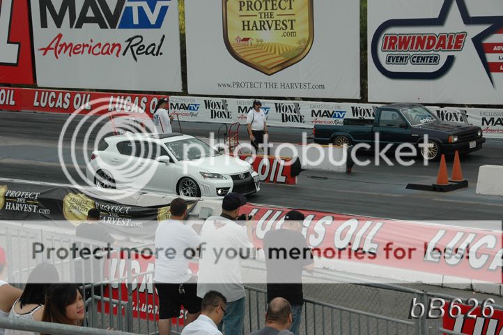 This was not expected. As I was leaving the stands for food, the Nissan GT-R pretended to have a little car trouble after the green light so it can give the Lexus IS one second head start. Next thing you know, the GT-R full trottled and beat the IS, also going 94 mph. I heard that the next run that the GT-R did, it broke the 100 mph mark.