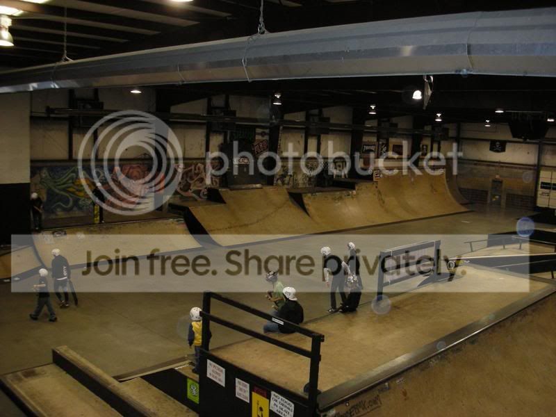 Skate Park - First up are some pics of the skate park. There were garage doors that could be opened up so skaters could skate from the indoor park to the outdoor park. It was a really nice place. The "pool" outside was amazing. I have never seen a skate park as nice as this one.