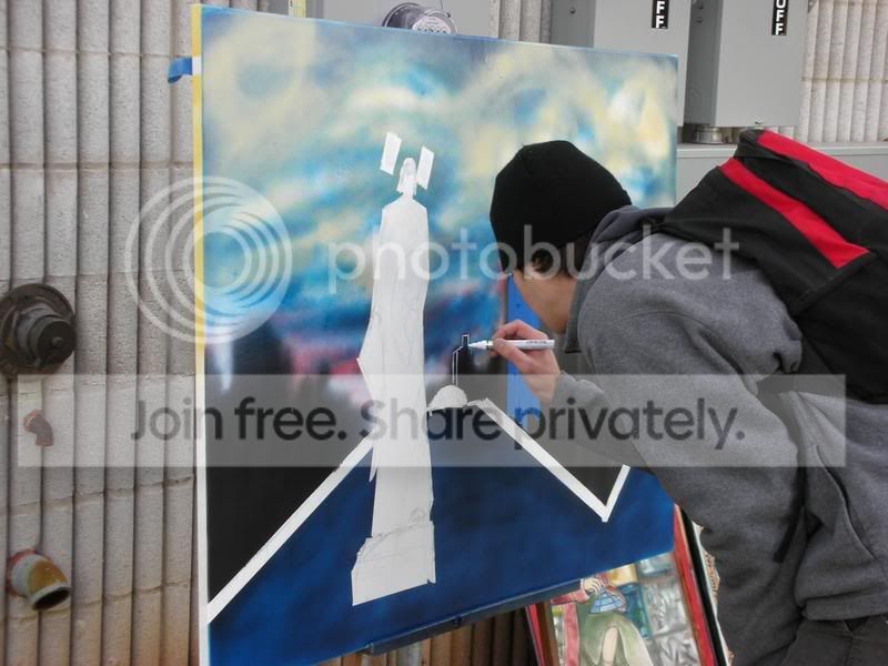 Graffiti Artist - Because of Scion's "underground" culture, a graffiti artist was brought in and did a painting that was raffeled off at the end of the day. He was really good. About 90% of the painting was done with spray paint.