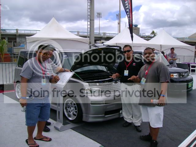 Thanks to Scion Evolution Hawaii for letting SE Maui display the team car. Thanks to the peeps on Oahu and Maui for all the help in making this once in a lifetime event happen, Liaisons Co and Marshall for pulled off another miracle, and the SE leadership and membership (especially Luke) for the onsite assistance, Special Thanks to Scion VP Mark T. for stopping by showing his Aloha, and Steve H. for allowing us Maui peeps to display at this special event as well as the special event items, and last but not least Maui Scion for the continued support.