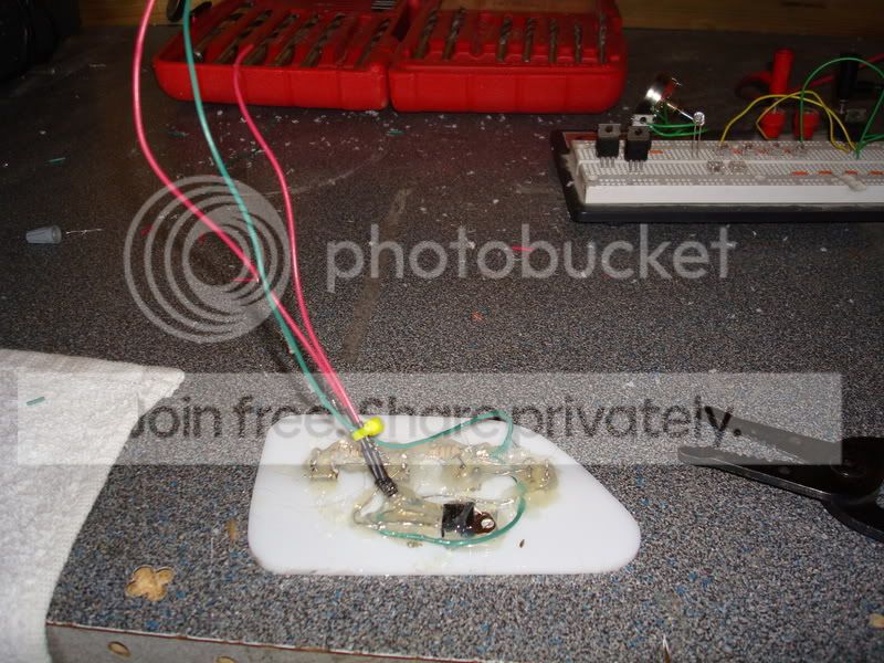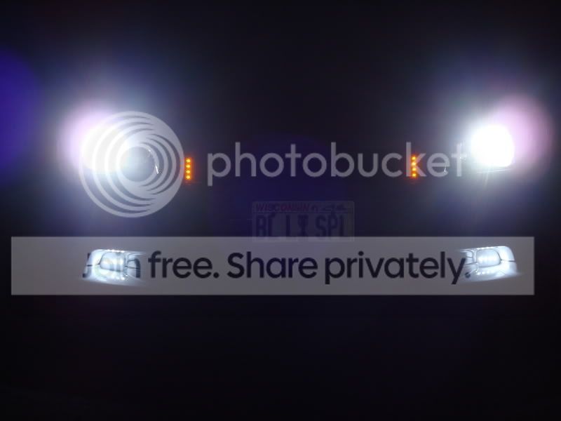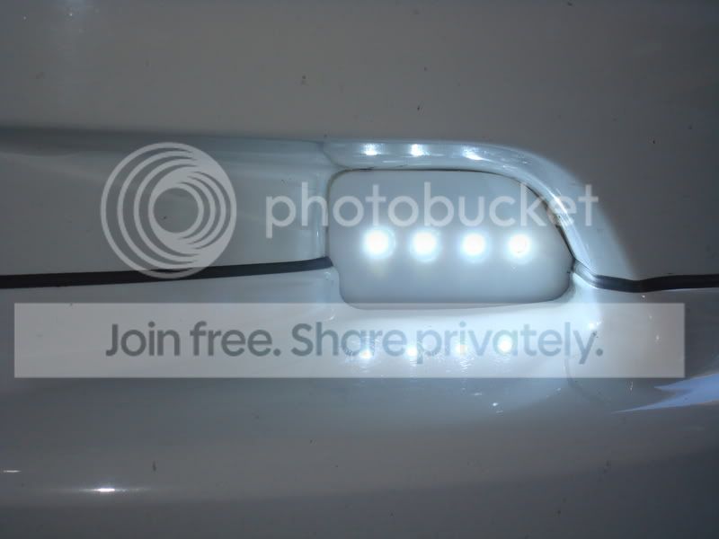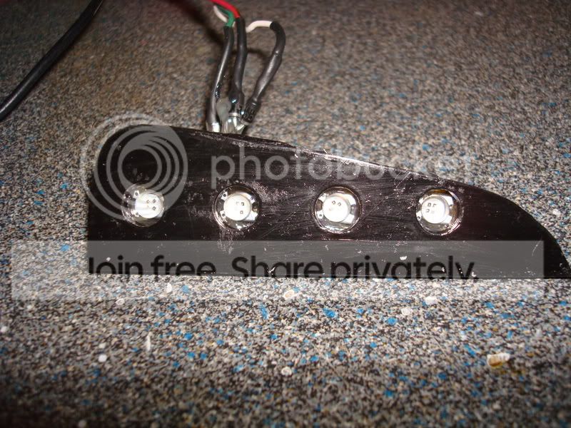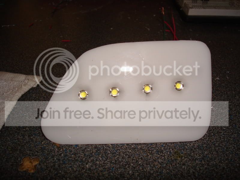 aight, well this first off started w/ redoing my 3rd brake backups w/ the besthongkong 100ma white superfluxe( left the back off so i can mod it w/ it inplace.. lol.. well, then i liked them too much so i redid my custom led fogs w/ these as well and put them in some custom white plexi instead of the black stock vent i had the previous version drilled into. . then i had some of the 80ma ambers so i custom made some mounts for them. since they strobe, and are expensive as hell, i regulated them as well as diode isolated them for the sho-me strobe kit.
