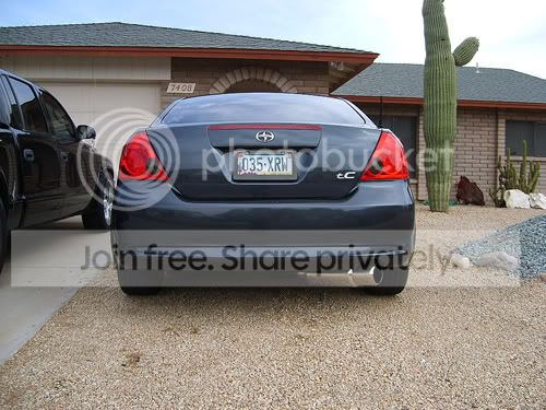 Been looking around the site for a little while now and finally have enough done to the tC to post a few pics. The mega angle of the exhaust was my fault, the muffler I picked out was a little too big and in order for it not to be that angled I would've needed 2 90* bends. I opted for the slightly better flow. The muffler looks a little ricerish but sounds very good with no rasp or rattle. It's done in 2.5inch from the cat back and I only paid $200 total and I get it redone for free in 3 inch whenever I get a turbo.