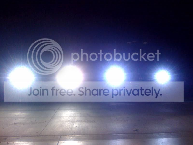 So I ordered a HID kit from MobileHID and wow what fast shipping and high quality. I got them on mondy and had been planning on being a responsible student and waiting untill the weekend to do the install and well I made it to tonight haha. The install took me a while but I'm really happy with the results. Only thing is, when I test drove em I got one guy flashing at me. When I got home I just turned the projectors (I have 08 heads) all the way down as a temporary fix but does anyone have tips for adjust the cut off properly. ie if im 20 feet away from a wall how high above the ground should the light cut off...