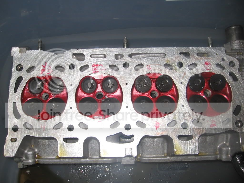I got my head ported and polished, vlaves 1 mm over. I put in a set of dezod valves, gude performance did the port and polish, also put in a set of gude stage 3 cams, 420/410 lt (in) and a set of there retainers and valve springs, and dezod valve guides. Everything went pretty smooth untill the car started, the shop that put this in got the timing wrong and on start up the pistons came up and sheared off 4 exhaust valves in two cylinders.