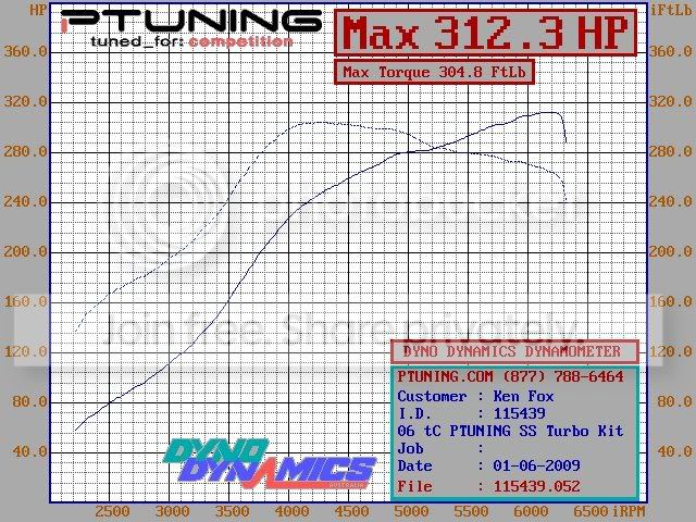 The numbers that i see above seem pretty accurate for 12.5 psi with the work done on the engine and using the dyno you were on. The 460hp or whatever it was at 12.5 psi is a LONG shot. With the PTUNING turbo kit on a Dyno Dynamics dyno and a stock motor turned out 312WHP.