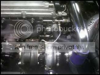 When I went up to the shop to pick up the clutch/flywheel, he was up there with the gt3076r equipped. They were working on the E-manage Ultimate wiring, and was planning on hitting the dyno the next day. I took some pics, but with my camera phone. Would have had my camera if I knew he was going to be there.