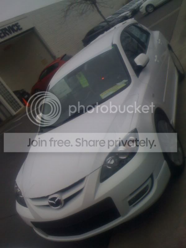 Hey guys, well I ordered a MS3 a couple months ago and it came in the other day. I traded in my tC after I stocked it out. Thank you to those of you who picked up some of my parts, it really helped when it came downpayment time. My speed3 came in Crystal White Pearl, a color added to the line up at the end of the year/run of the car. I am the first and so far only person in the US that I know witht he color already. I've had it for 2 days so far and lovin the power of the 2.3 DISI Turbo engine... 263hp 280tq. Here are a couple pics of it.