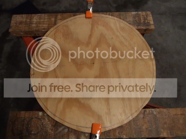 My first circle cut was too wide, approx 17" Rather than sand off .5" all the way around, I cut down to the new circle