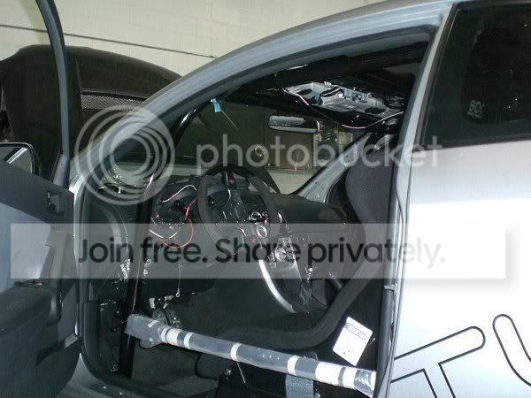 Just got some pics of the new cage installed. They did a great job! All the raw metal was painted gloss black and they gutted most of the bolts, brackets, and anything else not needed in there. I still need the speakers removed since i no longer have a stereo.