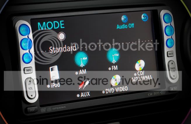 The tC's optional premium audio system adds one more feature to the standard head unit, the ability to download "skins" to play on the LCD faceplate. Customers can download images, four-second video clips and eight-second movies from Pioneer's website. In addition, Pioneer software allows customers to burn their own images and movies onto a CD and upload them onto the available head unit.