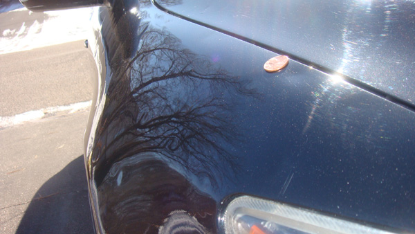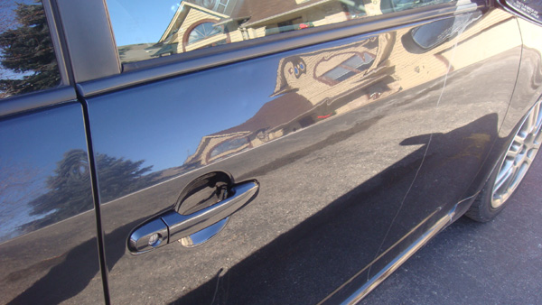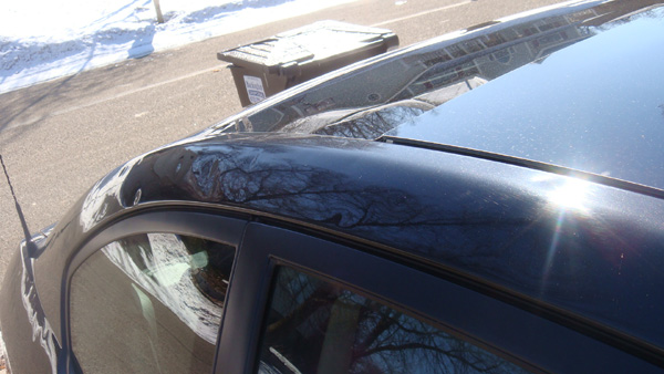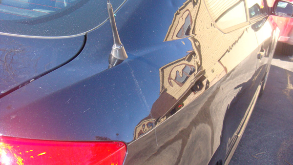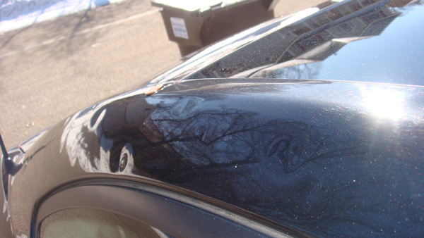 Here are some pics. I wish there was snow on the ground because it would help a lot with the poor reflection. The passenger side was hit the worst hence why I chose to just shoot that side (there is damage on both sides). Some of the images were inverted so you can see the damage.