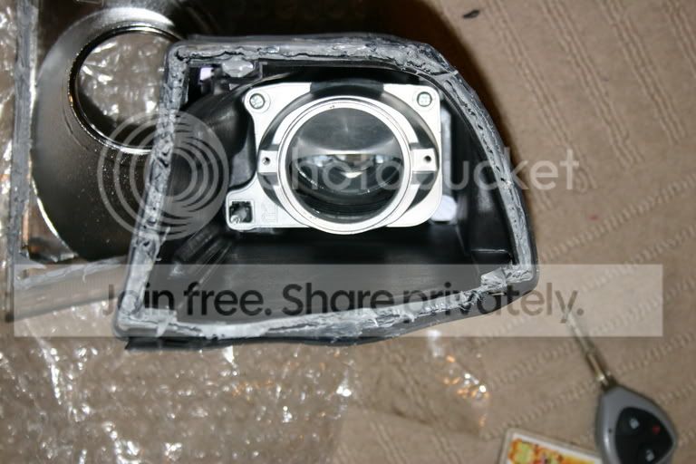 In order to line up the the projectors you will need to get rid of the rubber gasket that surrounds the socket. Here's a pic of what I'm talking about.