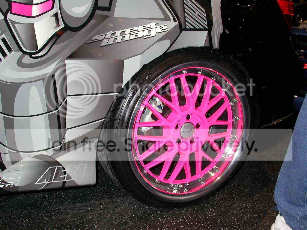 not too sure about pink, i like it, others may hate, and im not talking about ppl on the forumns, having pink wheels and being a guy could cause ppl to want to damage your car, or do hate crimes on ya, but w/e check these out...