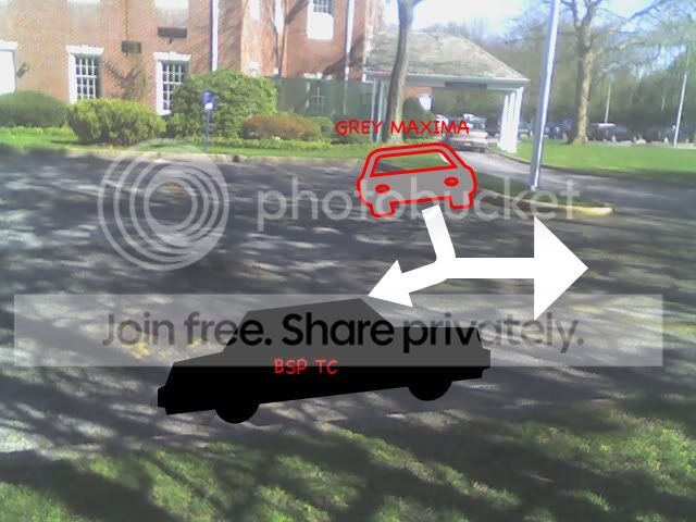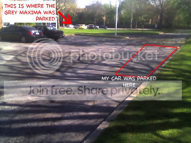 soo.. my car was parked where it says "my car was parked here" and the culprit was the grey maxima... or so i think.. i know the maxima was parked there because i had my mustang parked in the spot next to it...