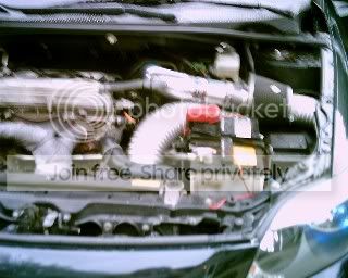 Ok so here it is, first of all sorry but my camera SUCKS!! its a $30 walmart camera so i don't expect perfect pics. The first pic is of my engine bay with the weapon r and two (homemade) ram air kits. The tubing off the right side of the filter is 3 inch dryer hose and is attached to the front bumper in the bottom grille insert (shown in second picture) and the tubing coming off the left side of the filter is 4 inch dryer hose that runs behind the radiator and under the car to a wide open expansion piece, i'm not sure what its called but it takes 4 inch round hose and makes it 4 by 6 rectangular. (as seen in pic 3)..... Notice in the first pic i also have header wrap, that seems to do a good job of keeping temps down under the hood, maybe a little more efficient??