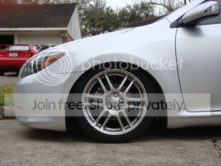 I had them in my tC in March for 4 weeks with about 1200 miles on it. They are in excellent condition, still new, and no damage whatsoever. Everything is preloaded and they're compatible with any year for the Scion tC. The ride is actually very smooth and handling is great. Also, I have a few pictures of my tC on these coilovers, although they're not very good. I noticed that no one else has posted pix of their tC on F2 coilovers, so here they are.