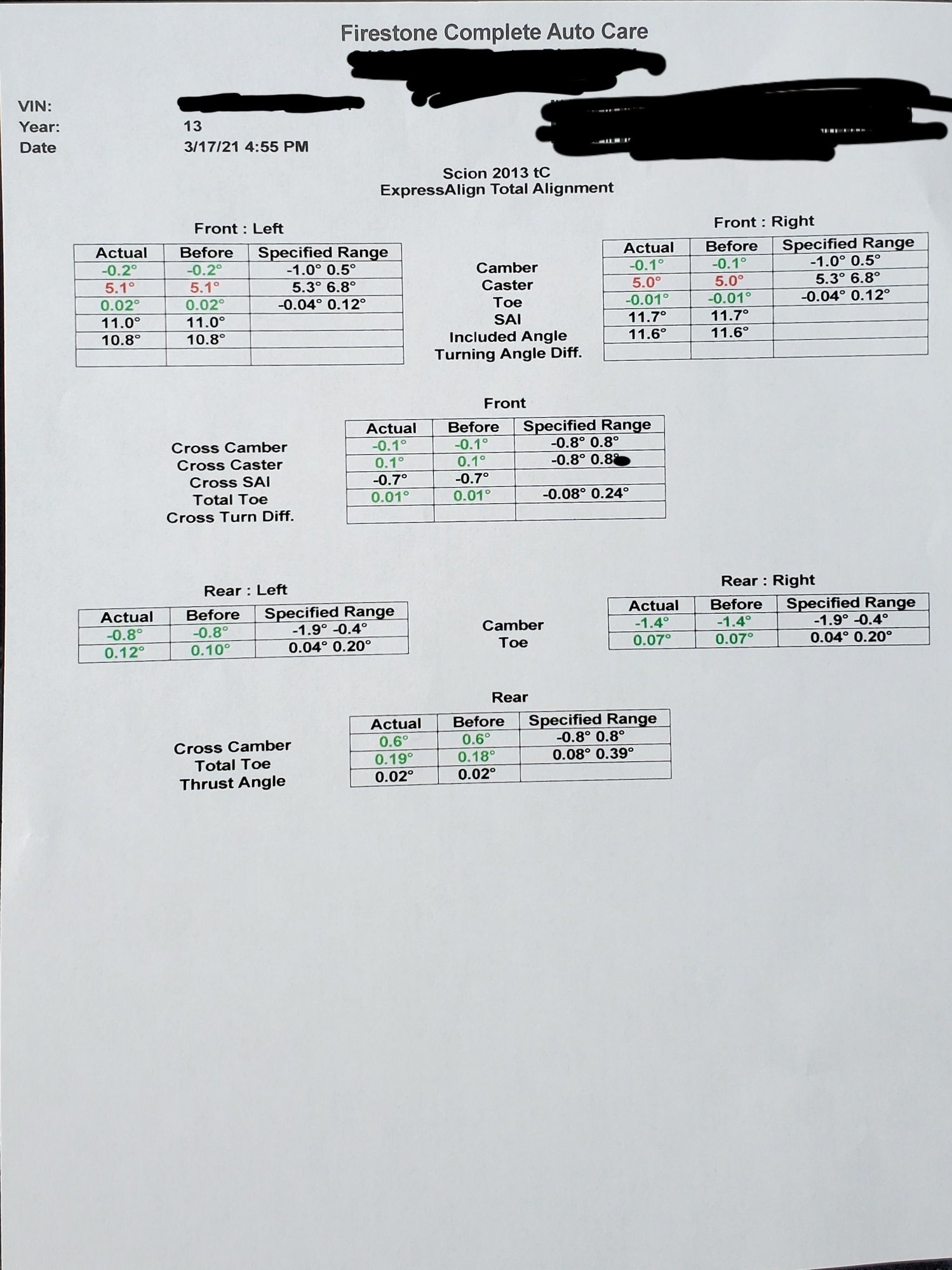 I'm asking if the Alignment info for my car is as it should be or close enough for a tC