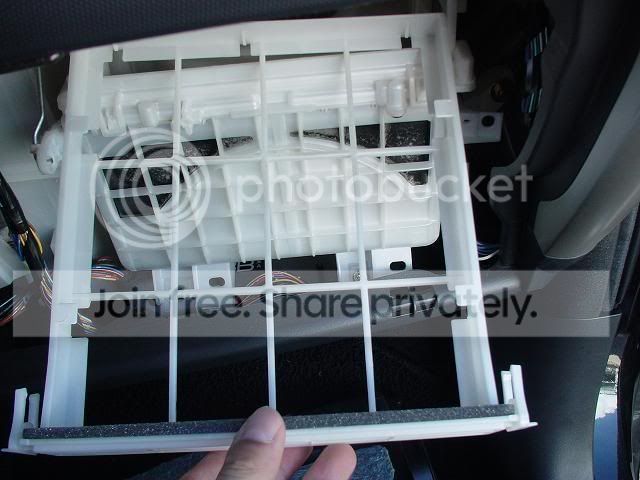 Just take all the crap out of the glove box, squeeze in at the back of the opened box and once you get it out, there is the white plastic you saw above. The spot for the filter will be at the top. You can even do this with your dad in the drivers seat because you don't have to worry about him being right that one is in there.