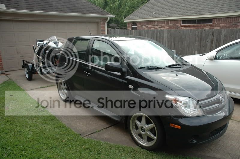Just came from the track (Texas World Speedway) 90mi. away. The xA was able to haul everything I had listed on my other posts with no problem. I'm dead tired so I'll post later-on what I've noticed while trailering. I sent Jeff1960 a pic of my set-up, he might be able to post it here so you guys can see it.