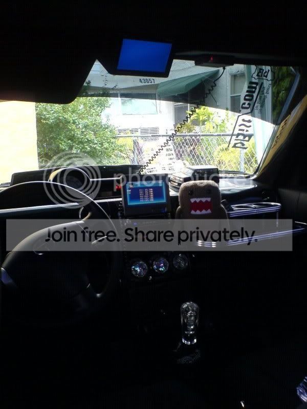 Hey there everyone I'm almost done w/ my interiorand i just wanted to show everyone how im comming along. All i need to do is add leather seats and a few more T.V.s then I'll be done until something els pops up, but here is what I got done so far, suede roof, blacked out visors, pillards, and my OH shyt handles i also put LED's in my OH SHYT handles Oh and i finaly after 6months i got my VIP table. enjoy