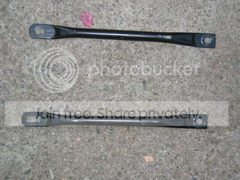 Installation for the JIC Type II lower frame brace was easy. However the instructions are also in Japanese and there is a picture of the brace bolting into and sharing a hole with the existing brace. These are two black metal rods that are about 8" long. As far as I can tell there is no way to bolt both the JIC brace and these braces. The JIC brace holds the same pieces together. It uses one of the same holes and the other is only an inch away from where the other end was supposed to go. I left these off as I couldn't find any possible way of using both. Below are the pieces I'm talkin about. If anyone has the JIC brace and got these on, let me know, but I'm thinking they don't go on.