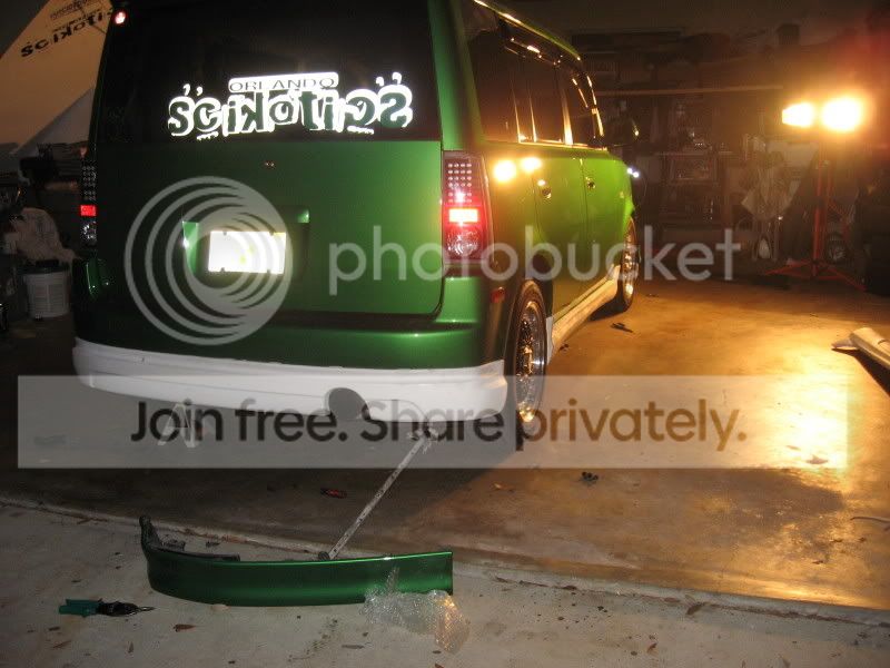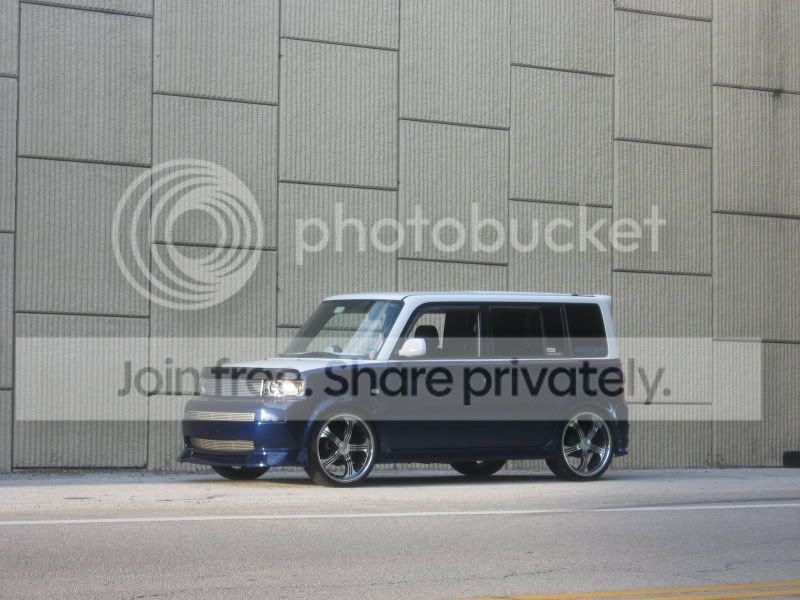 I'm working on my F-1 kit now. I also have a JP Visage rear lip with dual exhaust cutouts. Got all four pieces used and prepainted. Fits nice but maybe a bit heavy. I'll post pics once i get the side skirts on. Looks pretty much like the first pic except TCM and not bagged. Also have the FFF. IMO that is the cleanest looking setup for the xB.