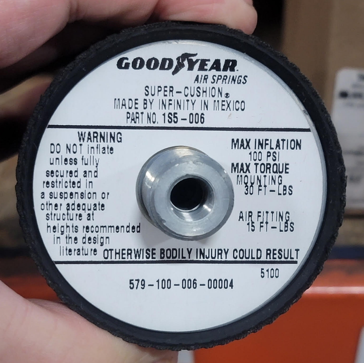 After more work than it should have been, I found out via Braun that the full assembly for the rear liftbags is not available anynore. After some tooth pulling, they finally let me know the OEM part number for the bag. Goodyear 1S5-006. This is no longer made either, but there seems to be stock available. Some parts outfits are cross referencing to a firestone part number which doesn't look anything like this.