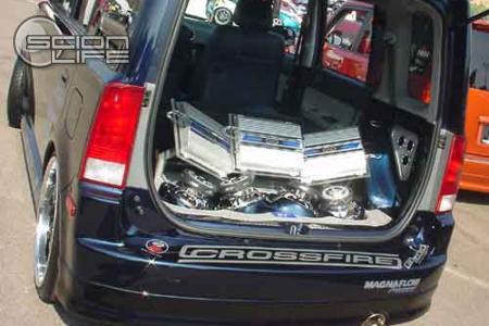 This month’s feature ride is no stranger to ScionLife, he goes by the user name DenZinz and you probably bumped into him before as he is quite active on the boards. Denny Huang’s car is an never ending project and has evolved through out these months. As the Marketing Director for CrossFire Car Audio, he has met numerous people in the aftermarket industry. You probably have seen his car on several online publications such as Speed Options as well as the Katzkin ad. He is also on the Crossfire ads and has earned the cover of the Anzo USA catalog as well as the upcoming 2005 Anzo USA Calendar. You’ll find his ride soon on Car Audio Magazine, Access Unlimited and HCI.
