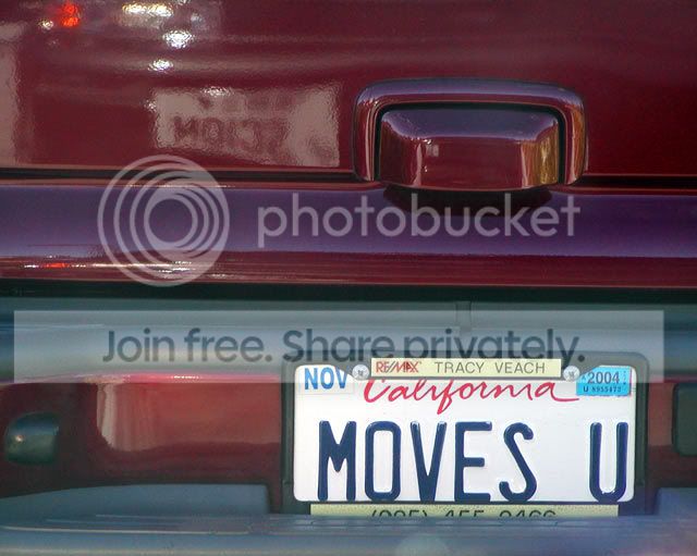A little reflective fun here, since this woman stole our slogan for her line of work on her big FUV, I had to slide my Scion plate into the mix. In the drivethru at In & Out: