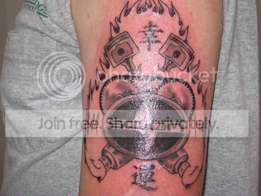 Something tells me you'll be researching laser tattoo removal in like 5 years. Nice tattoo and I applaud you for it... but seriously... long term? Would have been cooler to have been more automotive themed rather then brand specific.